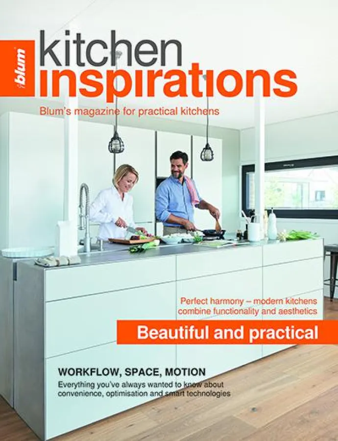 Höchst, Österreich, Monat/Jahr. Einfache Abläufe, optimale Raumnutzung, komfortable Bewegungstechnologien, Produktinnovationen, optische Raffinessen, Vorlieben von Küchennutzern rund um den Globus und jede Menge Tipps zu Form und Funktionalität – der Relaunch des beliebten Blum-Magazins „kücheninspiration“ beeindruckt mit viel Information auf 72 Seiten. Neu ist auch die Verbindung des Printmagazins mit den Möglichkeiten des World Wide Web.