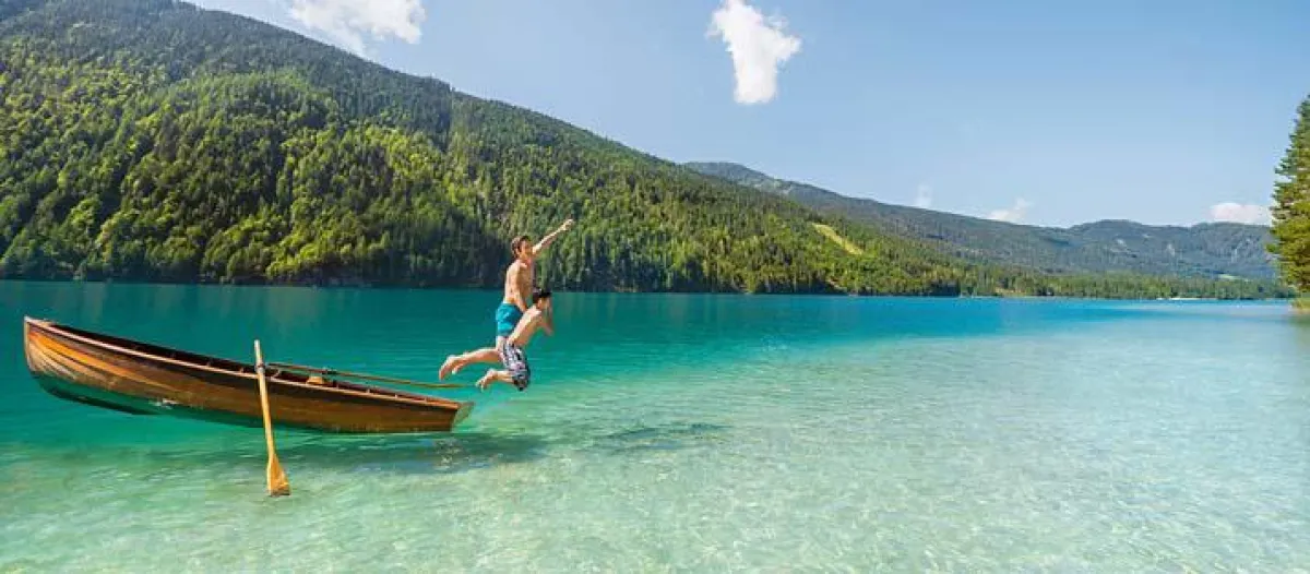 Das türkisblaue warme Wasser glitzert in der Sommersonne. Sanfte Wellen umspülen die Ruder des Bootes. „Papa, es ist einfach toll hier! Fast wie am Meer!“, ruft der kleine Jonas hocherfreut und rudert eifrig vom flachen Ufer weg. „Wink doch mal Mama zu! Schau, sie sonnt sich genüsslich am Strand“, antwortet sein Vater. Peter winkt seiner Frau freudig zu, als sich plötzlich seine Armbanduhr löst und ins Wasser fällt. „Ojeeeee, was machen wir jetzt, Papa?! Hoffentlich ist die Uhr wasserdicht.“ „Da habe ich starke Bedenken. Schade, dass es keine Taucheruhr ist.“, ärgert sich Peter. „Schau, Papa! Deine Uhr liegt dort unten am Grund. Ich kann sie in dem klaren Wasser gut erkennen!“, ruft Jonas aufgeregt. „Ja, ich seh‘ sie. Hier ist es zum Glück noch nicht tief - komm die holen wir jetzt gemeinsam rauf.“ „Oh, ja! Papa, lass uns gleichzeitig reinspringen und wer sie als erster hochtaucht, bekommt eine leckere süße Kasnudel mit Birnen.“ Jonas grinst seinen Vater triumphierend an. „Abgemacht, Jonas! 3-2-1-Looooos!“ Beide springen vom Boot in den See. Jonas taucht blitzschnell wie ein Fisch zum Grund und holt sich die Uhr – die Kasnudel ist ihm sicher. Eine halbe Stunde später sitzt der kleine Taucher bei seinen Eltern am Strand und genießt in vollen Zügen die feine Kärntner Spezialität. Sein Vater betrachtet derweil die wieder erlangte aber „mitgenommene“ Uhr und meint: „Nun ist sie zwar stehen geblieben, aber trotzdem eine Art Taucheruhr geworden, Jonas. Und zwar, weil du sie hochgetaucht hast.“ Alle lachen. „Und das Gute an dem kleinen Missgeschick ist, dass Jonas und ich nun wissen, was wir dir zum Geburtstag nächste Woche schenken werden“, meint Peters Frau und zwinkert ihren beiden Tauchern fröhlich zu.