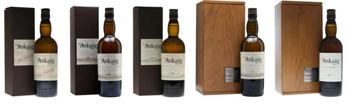 Kaum eine schottische Insel ist bei Whisky Freunden so beliebt wie die Isle of Islay mit ihrem stürmischen Meereseinfluss. Port Askaig umfasst eine Auswahl an Abfüllungen, bei denen nur die Herkunft bekannt ist, nicht jedoch die Brennerei. Wie es sich für einen Islay Malt gehört, besitzen alle fünf Abfüllungen leichte bis starke Torfnoten und einen deutlich ausgeprägten Einfluss des salzigen Meeres. Durch den Verzicht auf Färben und Kühlfiltrierung werden alle Port Askaig Abfüllungen unverfälscht auf den Markt gebracht.