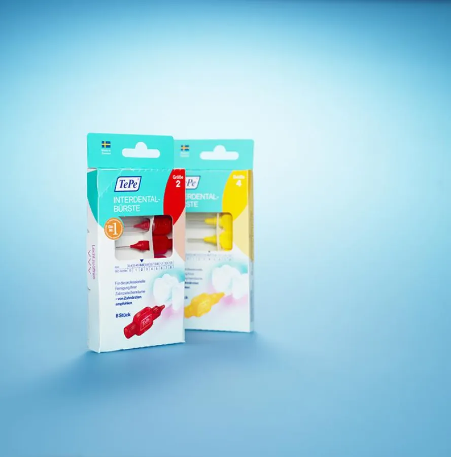 Mit der neuen Verpackung wird TePe seinen wichtigsten Produkten in Deutschland, den Interdentalbürsten, einen neuen Auftritt verschaffen – und gleichzeitig die Umwelt schonen. Die neue Verpackung der Interdentalbürsten für den Einzelhandel ist zu 100 % recyclebar und ermöglicht dank ihres kompakten Formats (75x148x14 mm) und der Wiederverschließbarkeit eine einfache, hygienische Aufbewahrung. Jede Packung enthält acht innerhalb der Schachtel fixierte Interdentalbürsten sowie eine Schutzkappe, die zusätzlich als Griffverlängerung genutzt werden kann.