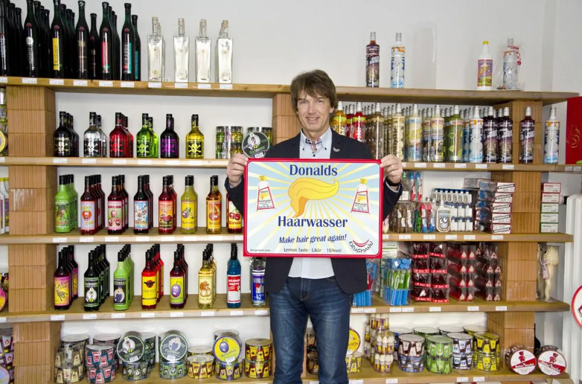 Pünktlich zur Amtseinführung des neuen US-Präsidenten Donald Trump wird dennoch ein Likör mit Lemon-Geschmack aus diesem Grund nun als Donalds Haarwasser auf den Markt gebracht. Das Label ziert der Slogan „Make hair great again“, in Anlehnung an Trumps letztlich erfolgreicher Wahlkampagne.“ „Unsere Produkte müssen immer Geschichten erzählen“, erklärt Stefan Petersen, „und Donald Trump ist dafür praktisch die ideale Vorlage.“