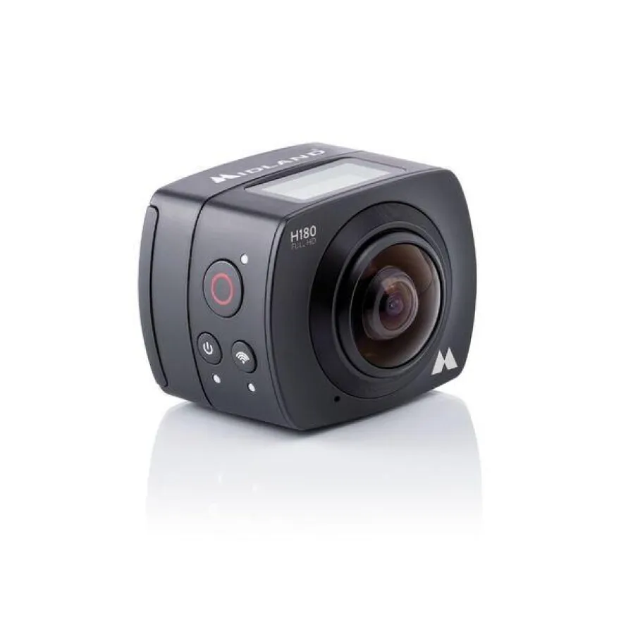 Die Midland H180 ist intuitiv in der Handhabung und verfügt über ein sehr gutes Preis-/Leistungsverhältnis. Alle Einstellungen zu Funktionen wie Fotoserien, Zeitraffer, Videoschleife oder Selbstauslöser und Slow Motion Video lassen sich am hochaufgelösten LC-Display übersichtlich bedienen. Über die WiFi-Schnittstelle wird eine Verbindung zur passenden App auf dem Smartphone oder Tablet hergestellt, um weitere Einstellungen wie die richtige Ausrichtung der Kamera vorzunehmen. Die Midland H180 hat einen 8 Megapixel-Sensor und ermöglicht Full HD Videos bei 1080p und 30 Bildern in der Sekunde. Optimierte Bildstabilisatoren sorgen zusätzlich für eine besonders hohe Filmqualität. Zum Schutz der Kamera, sowie für Aufnahmen im Regen oder Wasser, ist im Lieferumfang ein wasserdichtes Kunststoffgehäuse mit einer Dichtigkeit bis 30 Meter enthalten. Mit den geringen Abmessungen von 51 x 42 x 35 mm und einem Gewicht von nur 84 Gramm, inklusive Batterie, ist die kleine 180 Grad Full HD Action Kamera ein perfekter Begleiter bei jeder Fahrt und bei jedem Ausflug.