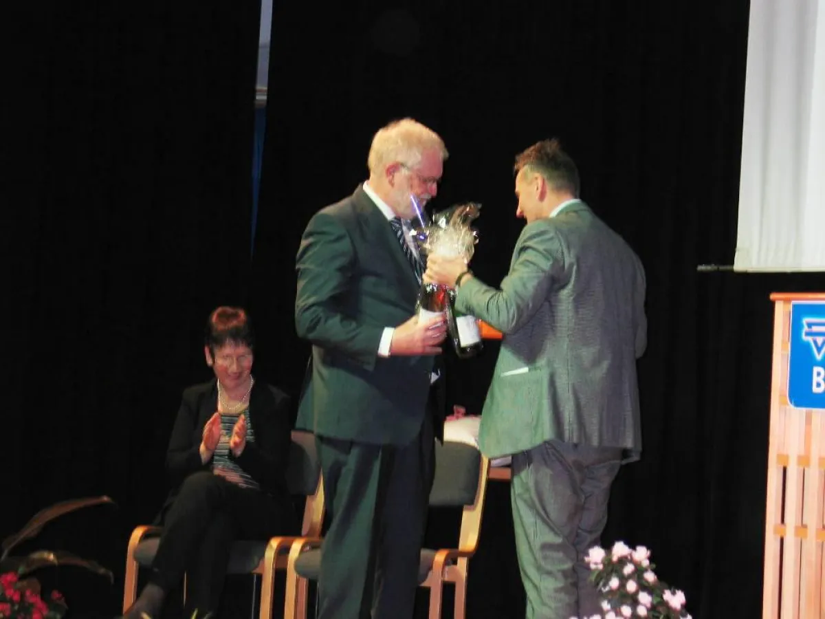 Claus Weidinger, von der Bezirksregierung Köln, schenkte ihm symbolisch einen Wecker mit dem Rat: „Genießen Sie die freie Zeit ohne Pflichtprogramm und Wecker“. Auch Kirsten Vollmer, Bundesinstitut für Berufsbildung (BIBB), Bonn und Samuel Breisacher, vom CJD Direktorium, lobten seinen stetigen Einsatz für die jungen Menschen mit Förderbedarf, denen er als Herzblut Pädagoge und Chancengeber, ins Leben verholfen habe, damit keiner verloren gehe.