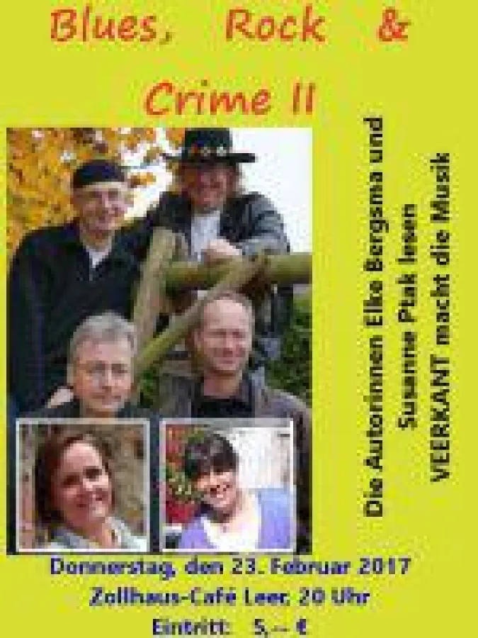 Dieses Mal findet eine ganz außergewöhnliche Veranstaltung am 23. Februar 2017 ab 20 Uhr im Zollhaus-Café statt. Kriminelles aus Ostfriesland, garniert mit plattdeutschen Rock- und Bluestiteln, wird bei der zweiten Auflage von "Blues, Rock und Crime" präsentiert.
