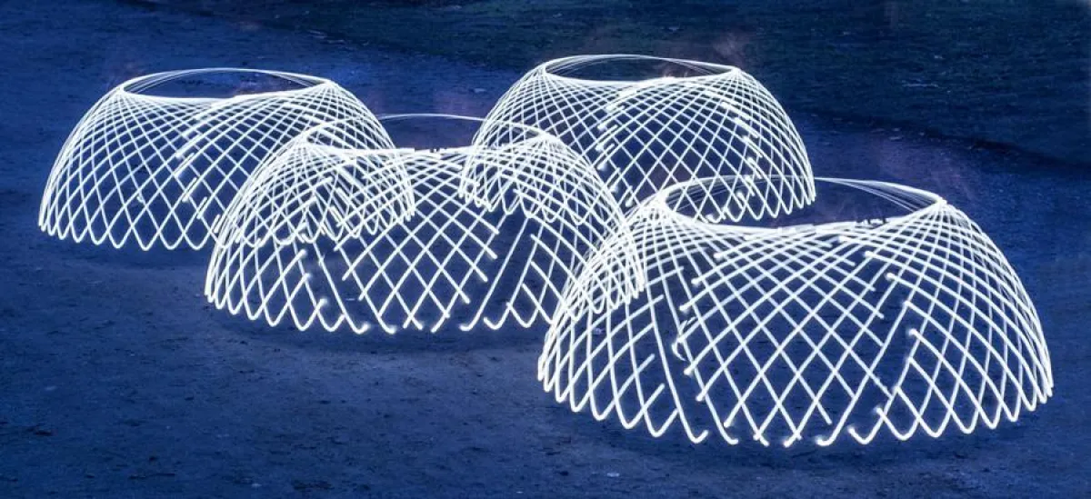 Im Fotoworkshop „Lightpainting“ werden professionelle Lightpainting-Werkzeuge eingesetzt. Lichtwellenleitungen, deren viele dünnen Fasern wie ein Pinselquast wirken, erzeugen magische, fast flammend wirkende Licht-Auren um Personen und Gegenstände. Mit einem anderen Lichtwerkzeug und einer bestimmten Technik lassen sich Personen mit Lichtstreifen einwickeln. Eins der absoluten Lightpainting Highlights sind die als „dome“ bezeichneten, auf dem Boden liegenden Halbkugeln aus Licht. Mit dem richtigen Werkzeug und etwas Übung lassen sie sich recht leicht malen. Auch die als „Raupen“ bezeichnete Lichttunnel beeindrucken und können sich quer durch‘ s Bild ziehen.