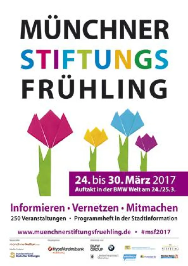 Was genau macht eine Stiftung eigentlich? Mit welchen Themen befasst sie sich, und wo kann ich mich einbringen? Wie gründet man eine Stiftung? Macht Zustiften Sinn? Diesen und anderen Fragen wird der MünchnerStiftungsFrühling auf den Grund gehen und lädt die Bürger dazu ein, die Stiftungen mit Sitz oder Aktivitäten in München genauer kennenzulernen und so die Vielfalt der Stiftungslandschaft zu entdecken.