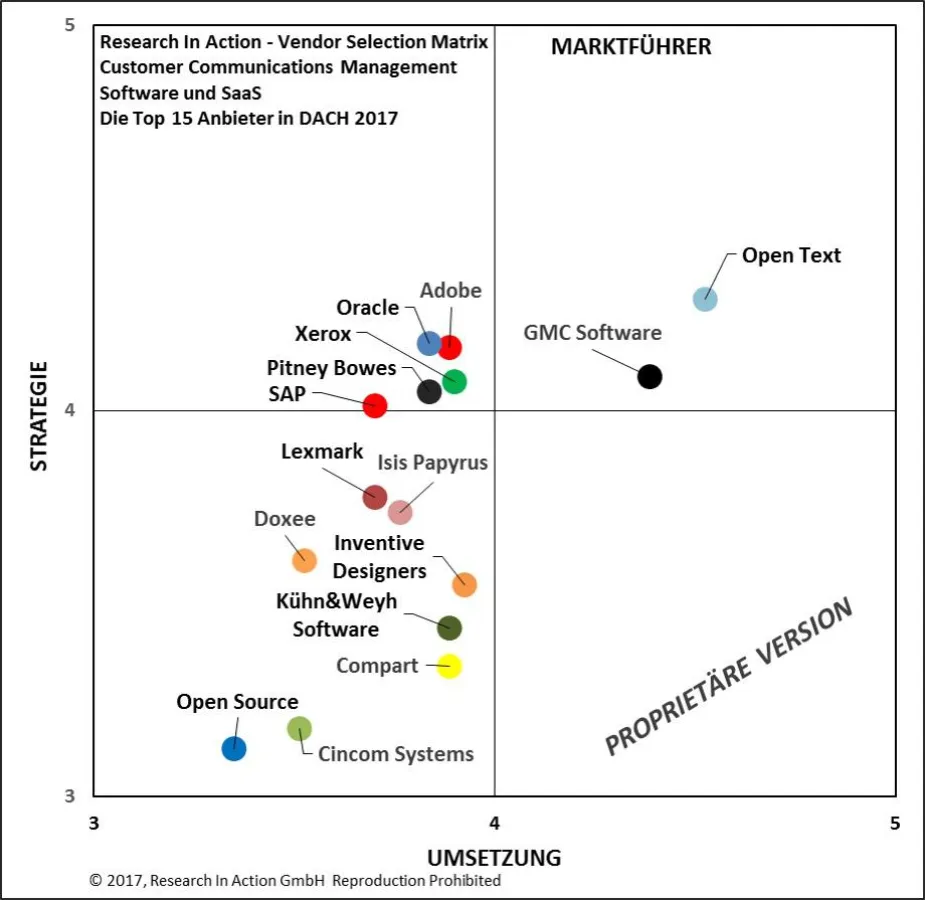 Research In Action GmbH veröffentlicht die neuste Vendor Selection Matrix - Customer Communications Management Software und SaaS: Die Top 15 Anbieter in DACH 2017.