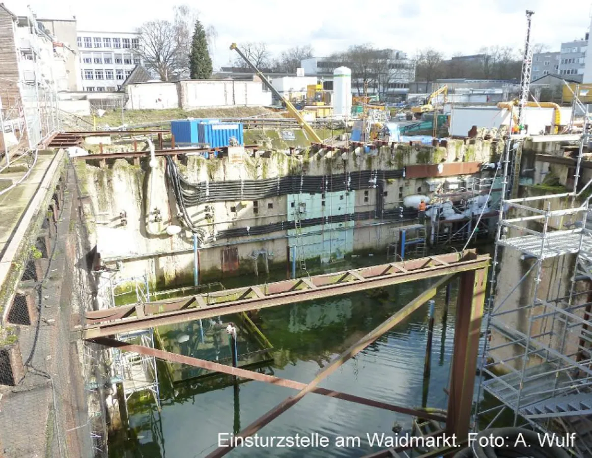 Den Nord-Süd Stadtbahn-Tunnel, 28 Meter unterhalb des Waidmarktes, durchfährt die U-Bahn frühestens im Jahre 2024 – wenn alles gut geht. Die dort vorher erforderliche Gleiswechselanlage bauen nämlich diejenigen, die für den Archiveinsturz verantwortlich sein sollen und Schadenersatzzahlungen von rund 1,3 Mrd. EUR zu erwarten haben. Bleibt nur zu hoffen, dass damit keine Insolvenz einhergeht, denn ein anderes Unternehmen war bislang nicht bereit, den Auftrag zu übernehmen.