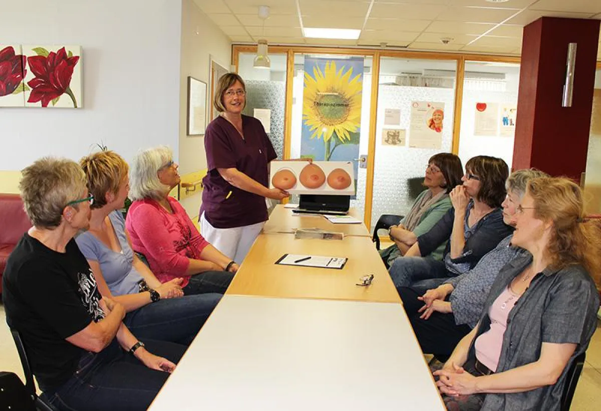 "Durch die gemeinsamen Übungen wird das Gefühl für den eigenen Körper gestärkt und im persönlichen Gespräch oder Erfahrungsaustausch eventuelle Ängste oder Scheu genommen", weiß die Brustschwester. Außerdem gab es auch positive Nachrichten: Vier von fünf aller gefühlten Knoten sind gutartig. Und im Frühstadium entdeckter Krebs ist zu 80 Prozent heilbar, wenn keine weiteren Absiedlungen im Körper sind. "Neben den Vorsorgeuntersuchungen nimmt die Selbstuntersuchung der Brust deshalb einen hohen Stellenwert ein", so Annette Hanisch.