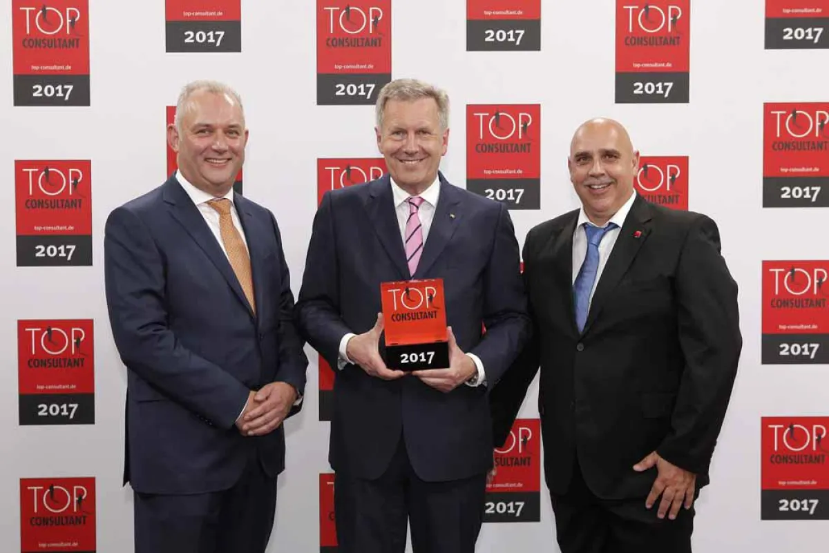 (openPR) BAS zählt zu den besten Mittelstandsberatern Deutschlands / TOP CONSULTANT-Mentor Christian Wulff überreicht Trophäe.