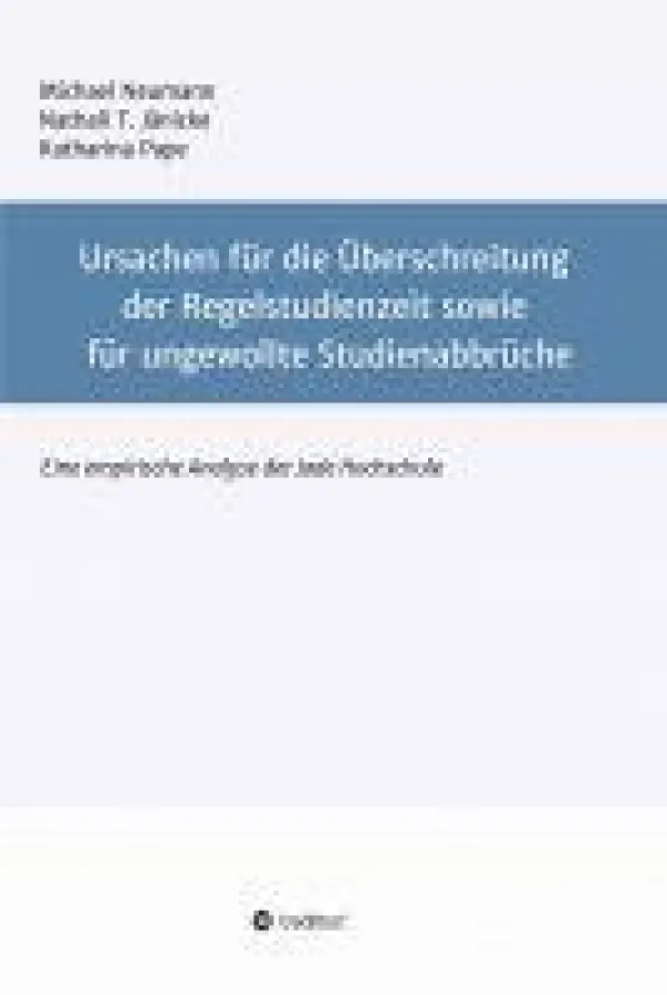 Nicht alle, die ein Hochschulstudium beginnen, schließen es in der Regelstudienzeit ab. Einige Studenten brechen ihr Studium sogar nach wenigen Semestern ganz ab. Das Buch "Ursachen für die Überschreitung der Regelstudienzeit sowie für ungewollte Studienabbrüche" sucht nach Ursachen für diese ungewollten Abbrüche und Überschreitungen der Regelstudienzeit. In einem Forschungsprojekt der Jade Hochschule Wilhelmshaven wurden von Michael Neumann, Nathali T. Jänicke und Katharina Pape die Ursachen für Überschreitungen der Regelstudienzeit sowie für ungewollte Studienabbrüche mittels einer empirischen Analyse an den Fachbereichen Management, Information, Technologie und Wirtschaft der Hochschule untersucht.