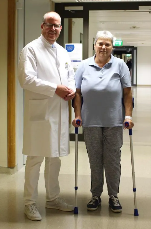 An Treppensteigen war nicht mehr zu denken, beim Tragen der Einkäufe war die 62-Jährige auf Hilfe angewiesen, bei nasskaltem Wetter waren die Schmerzen meist unerträglich und nur mit Tabletten einigermaßen aushaltbar - für Edeltraud Danner war der Leidensdruck hoch. Oft ist es eine Arthrose im Kniegelenk, die unsägliche Schmerzen beim Gehen auslöst und der Grund für die Implantation eines künstlichen Kniegelenks ist. So auch bei Edeltraud Danner. "Erst wenn alle nichtoperativen Behandlungsmöglichkeiten durch Physiotherapie oder Medikamente ausgeschöpft und die Schmerzen äußerst stark sind, dann denken wir über eine Knieprothese nach", erklärt Dr. Michael Klein. In seiner bisherigen beruflichen Laufbahn konnte er unter anderem als Hauptoperateur an einem EndoProthesenZentrum schon viele Knieprothesen implantieren. Seine Erfahrung sowie seine fachliche Kompetenz setzt er nun auch am Klinikum Lüdenscheid für Patienten aus dem Märkischen Kreis und darüber hinaus ein. "Wir freuen uns, dass sich unsere Klinik für Orthopädie und Unfallchirurgie, spezielle Unfallchirurgie in kürzester Zeit fachlich weiterentwickeln konnte. Das medizinische Leistungsangebot soll auch künftig weiter ausgebaut werden", erklärt Dr. Thorsten Kehe, Vorsitzender der Geschäftsführung der Märkischen Kliniken.