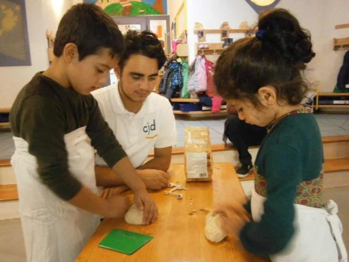 Dieses Jahr zu Sankt Martin haben die Auszubildenden vom CJD Bonn mit den „Wackelzahnkindern“ aus dem benachbarten Kindergarten Botania gemeinsam Weckmänner gebacken und beim anschließenden „Sankt Martins-Frühstück“ geteilt, gegessen und gesungen. Mit Sprachlosigkeit und offenen Mündern wurde der „echte“ Sankt Martin mit Helm und Mantel begrüßt. Alle 92 Kinder, im Alter von 2 – 6 Jahren, hielten stolz ihre leuchtenden Lotusblütenlaternen in der Hand und lauschten gespannt, was der Sankt Martin zu erzählen hatte. Der Kindergarten Botania hat in diesem Jahr an der Laternenaktion von World Vision „Lichterkinder“ teilgenommen. Bei der Lichterkinderaktion leuchteten im ganzen Land 160.000 Laternen für Kinder in Not. Dabei steht das Teilen ganz im Vordergrund. Im Kindergarten Botania wurden Spenden durch einen Kindergartenverkaufsladen eingenommen und „Schnörzspenden“ gesammelt. Insgesamt kamen dabei stolze 473,21 Euro zusammen und helfen jetzt Kindern in Indien. Das pädagogische Konzept des Kindergartens ist lebensweltlich orientiert und die Kinder dürfen frei nach ihren Möglichkeiten mitbestimmen. Mit dem „Blick über den Tellerrand“ hat sich der Kindergarten Botania auf eine Weltreise begeben. Indien haben die Kinder jetzt kennengelernt, bald folgen neue Bilder, spannende Geschichten und kulturelle Bräuche aus Europa. Und wohin die Reise weitergeht, dass wissen nur die Lichterkinder. Die Idee, mit den Kindern aus Botania gemeinsam zu backen, diente dazu, den Kontakt beider Einrichtungen zu fördern. Die Kinder hatten einen riesen Spaß, leckere Weckmänner und haben einen Eindruck vom CJD Bonn bekommen