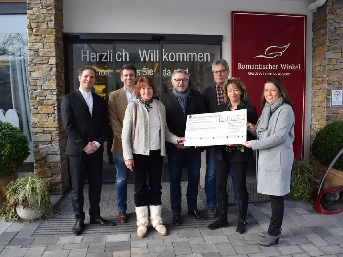 (openPR) Schon im November sammelte das Hotel Romantischer Winkel SPA & Wellness Resort in Bad Sachsa mit seinen Ladies-Nights erneut Geld für einen guten Zweck. Mit der Spende soll für die Schüler des Internatsgymnasiums Pädagogium Bad Sachsa und der Oberschule Bad Sachsa ein JUMP!-Training finanziert werden, das auf die schwierige Berufs- und Studienwahl vorbereitet. Jetzt überreichten die Hotelinhaber des „Romantischen Winkels“ Josef und Nora Oelkers gemeinsam mit Sylvia Wulf vom MEKOM Regionalmanagement Osterode am Harz e.V. die gesammelten 1.000 Euro an den JUMP!-Trainer Max Reister sowie an Vertreter beider Schulen.