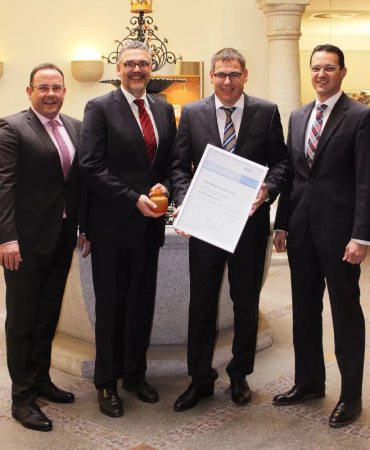 (openPR) Kürzlich konnten Edmund Wanner, Vorstandsvorsitzender, und Norbert Herten, Vorstandsmitglied, von R+V Filialdirektor Bernhard Weltrowski und R+V-Bezirksdirektor Lorenz Bartonek eine Auszeichnung für hervorragende Zusammenarbeit und Kundenbetreuung entgegennehmen. Edmund Wanner zeigte sich sehr erfreut über die erneute Auszeichnung. „Wir sind sehr stolz auf unsere Mitarbeiter, die täglich ganzheitlich und individuell beraten.“ Seit annähernd zehn Jahren arbeite die Volksbank im Versicherungssegment ausschließlich mit der R+V zusammen. „Dadurch verfügen unsere Kundenberater über detaillierte Produktkenntnisse und bieten gemeinsam mit den Referenten der R+V vor Ort die gesamte Versicherungspalette an.“, erläutert Norbert Herten.