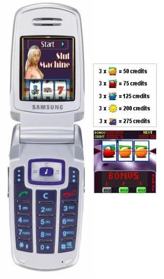 SlutMachine ist eines dieser neuen Spiele aus dem Zelfi-Software-Bestand und bringt etwas Las Vegas-Atmosphäre auf das Mobiltelefon: Eine Mixtur aus Spielvergnügen mit einarmigen Banditen und Erfolgserleben durch das Erspielen einer Bonuspunkt-Summe, die zur Belohnung den Anblick erotischer Abbildungen freigibt.