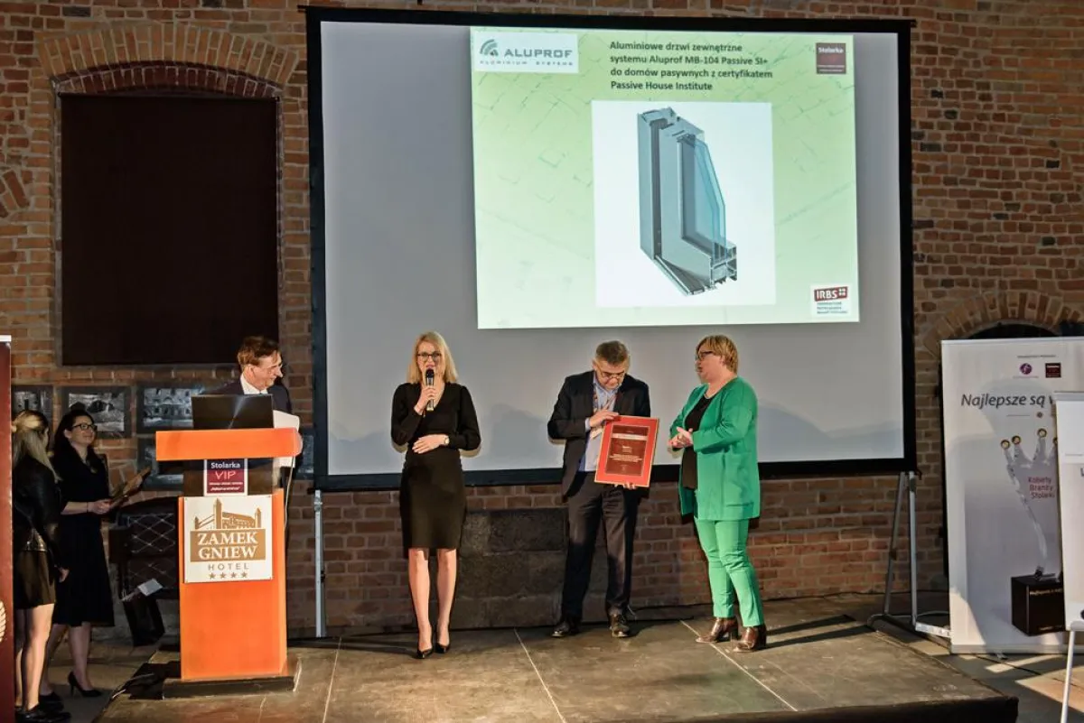 Bielitz/Polen, den 09. März 2018 – Die Firma ALUPROF, einer der führenden Entwickler von Aluminiumsystemen in Europa, wurde im Bereich der innovativen Holzverarbeitung 2018 ausgezeichnet. Bei der feierlichen Gala der 20. Zusammenkunft der Fenster- und Türenbauer im Schloss Gniew am 22. Februar 2018 wurde dem Unternehmen die Auszeichnung für das Aluminium-Rollladensystem SP und SP-E und die Türen des MB-104 Passive SI+ Systems verliehen. Organisator dieser jährlich stattfindenden Veranstaltung sind die VIP Fenster- und Türenbauer.